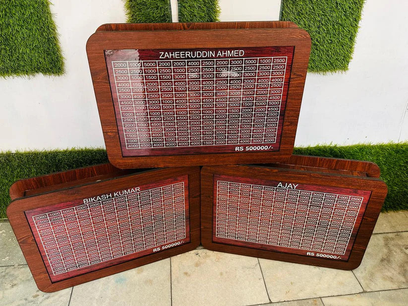 Achieve your financial goals with this beautifully crafted wooden money saving box. Designed to motivate consistent savings, it comes with a tracking paper that allows you to mark your progress each time you deposit. With a maximum capacity of ₹1,00,000, this piggy bank is perfect for teaching children and inspiring adults to build strong money habits.